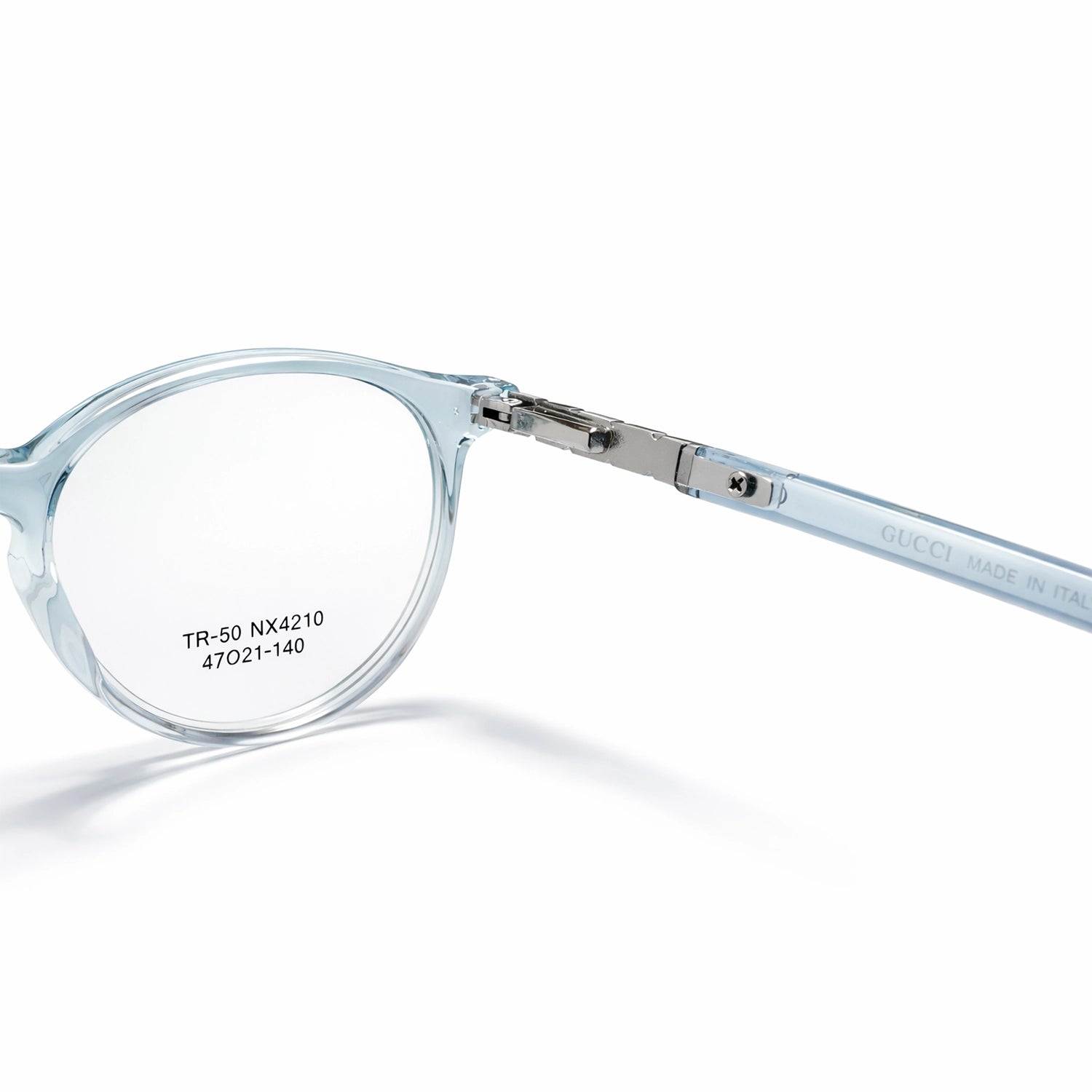 Experience the ultimate fusion of high-fashion luxury and modern minimalism with the Gucci Sky Blue Transparent Full Rim Round Eyeglasses. These frames showcase Gucci’s iconic design language, utilizing a fresh, translucent palette to create a look that is both intellectually sophisticated and trend-forward.